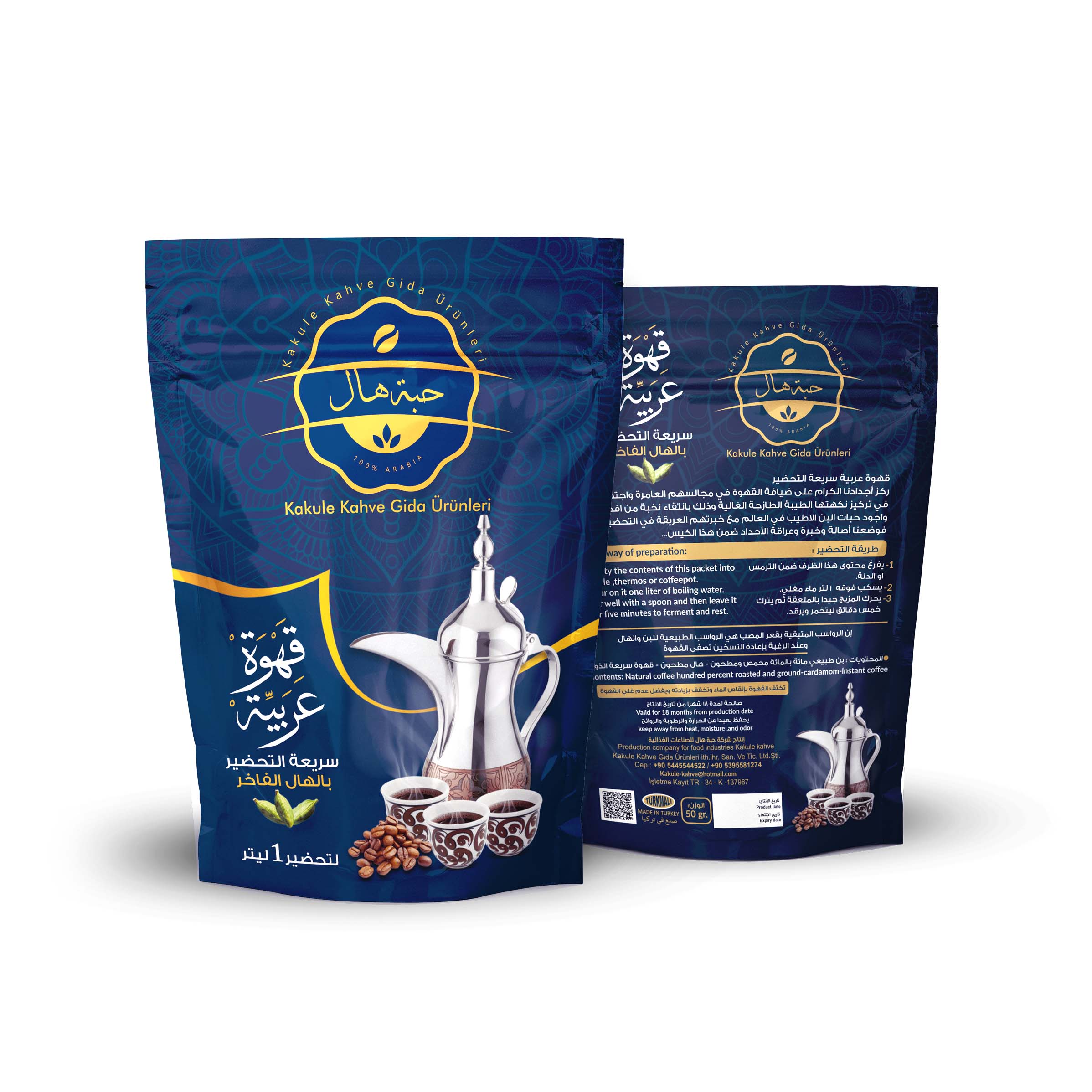 قهوة عربية سريعة التحضير تكفي لتحضير لتر واحد من القهوة العربية الأصيلة في لحظات! كل ظرف يمنحك مذاق غني فواح ورائع مع الهال والنكهة العربية الأصيلة لتستمتع بها مع أحبائك.